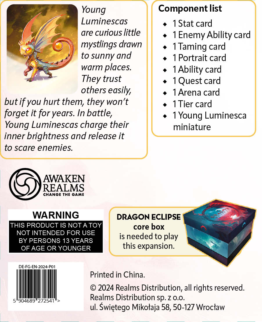 The Young Luminesca expansion adds the Young Luminesca Mystling to the Dragon Eclipse base game that can be used during the Campaign, PvP, and Roguelite mode.